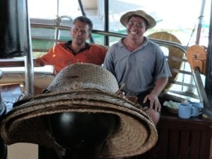 Ich bin ein früher Gast, einer, der lieber am Morgen zu Besuch kommt, denn ab zehn Uhr sticht die gleißend helle Sonne über die balinesische See und es wird sehr, sehr heiß. Das Jetty holt die Tourmanagerin Laura und mich an der Mole des kleinen Hafens von Serangan ab, ganz in der Nähe von Denpasar. Wy, der Deckmaster, steuert das kleine Beiboot einmal rundherum um Madame „Adelaar“, damit ich den Doppelmaster in seiner ganzen Pracht begutachten kann.
