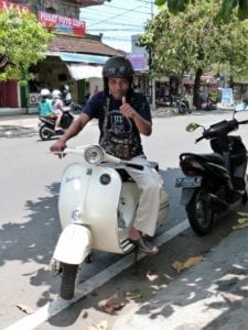 Erinnert sich eigentlich noch jemand an den Film Quadrophenia? Mit einem extrem coolen Sting als Ace auf seiner vercromt glänzenden Vespa? Dieser Film war übrigens Schuld daran, dass ich mit 16 meine erste Vespa haben wollte. Die Travelling Lady trug damals übrigens noch keine eleganten Kleider sondern einen alten Parka, Chucks oder Doc Martens und fuhr ihre kleine blaue PK 80 S über hessische Landstraßen. Aber wir sind ja in Bali, und nun ist es auch gut mit der Hymne auf die Vespristi.