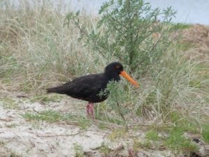 Sie nickt, aber sie möchte nur rasch ihren Mann fragen, der hat hier das Sagen. Na, toll, denke ich, da hätte ich mir von einer Neuseeländerin aber mehr Feminismus erwartet. Da kommt er auch schon, ein Maori, er so dunkel wie sie blond. Nau mai ki roto i te reka, sagt er, Willkommen in meinem Haus. Du willst hier dein Zelt aufschlagen? Sicher in den Dünen, ganz nah am Meer? Ich nicke. Er grinst. Gut, ich zeige dir, wo. Ich belade mich mit meinem Kram und stapfe ihm hinterher. Es geht einen kleinen Pfad voraus, weg von der Farm, durch duftenden Baumbestand. Die Zikaden veranstalten einen Höllenlärm. Dazwischen ruft ein Tui-Vogel, ein Bellbird schlägt auch an. Das hatte ich irgendwie vergessen, diesen Krach, wenn man auf dem Land ist.