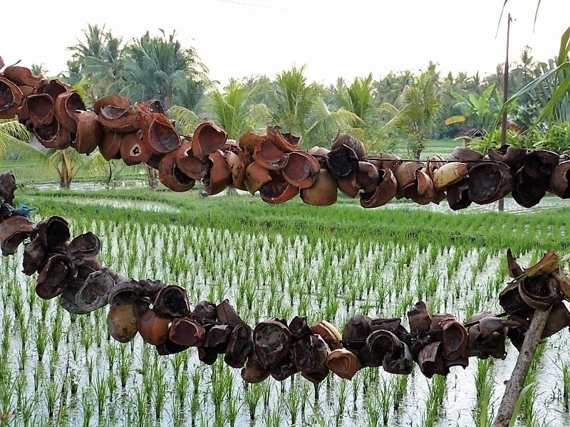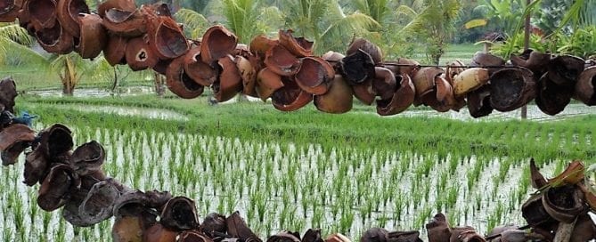 Bali ist das „Love“ in der unsäglichen Bestsellerverfilmung „Eat, Pray, Love“ von Elizabeth Gilbert. Nicht, dass die Romanvorlage besser gewesen wäre; sie verklebt eine unschöne Diagnose – „Depressionen“ – mit Selbstfindungskitsch und Healing-Esoterik vom Feinsten. Was ich dem Film zugute halten will, sind die schönen Bilder aus Bali, und hier im wesentlichen aus Ubud und den Reisfeldern. Als ich so durch ebenjene Felder wanderte, kam mir in den Sinn, wie grau es doch für Menschen mit einer Grünschwäche auf der Insel der Götter sein muss. Denn Bali ist knallgrün, dunkelgrün, blassgrün, blaugrün, hellgrün, graugrün…