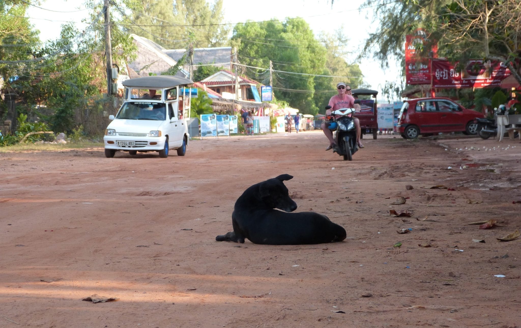Und wenn, dann doch bitte gleich an einem sehr entspannten Ort: Otres Beach 1 bei Sihanoukville. Wundern Sie sich nicht, es gibt zwei Otres Beaches und dann noch ein Otres Village. Während letzteres an einem Flusslauf und kleinen See einige Kilometer im Landesinneren liegt und eher weniger Charme besitzt als, sagen wir Timmendorfer Strand, scheint Otres Beach 2 so etwas wie das wahre Otres Beach zu sein – noch abgelegener, noch alternativer, noch schöner, wie mir einige sendungsbewusste Backpacker mit auf den Weg gaben. Sei’s drum, mir gefiel es in Nummer eins ganz ausgezeichnet, weswegen es eine kleine Galerie, ein paar Tipps und sonst nichts gibt.