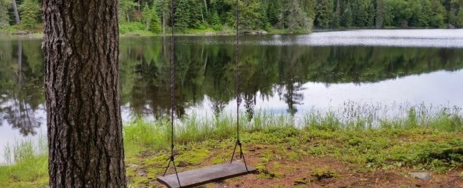 Während Bruce Springsteen, die Bangles oder Blur vor sich hindudeln – immerhin spielen sie hier kein einziges Mal den sonst nicht zu entrinnenden Sommerhit „Despacito“ – lese ich mich am ersten Tag durch zwei angefangene Bücher und etliche offline gespeicherte Beiträge. Unter anderem den Artikel eines meiner Lieblingsschriftsteller Douglas Coupland in der Financial Times, der sich im Selbstversuch einer digitalen Detox-Therapie unterzieht. Also in etwa das, was ich hier mache. Digitale Detox, ja, das passt. Und ich sinniere vor mich hin, überdenke einige Entscheidungen, die ich getroffen zu haben meine, denke an Menschen, die mir viel bedeuteten und an jene, die mir immer noch wichtig sind. Ich denke über die Vergangenheit nach und an die Zukunft, die ungewisse. In den Regenpausen gehe ich raus an den See, schaukele wie ganz früher, es fehlen nur die fliegenden Rattenzöpfe und die anderen Kinder.
